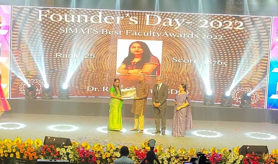 Dr.J.Vijayashree - Best Faculty SIMATS - 2022