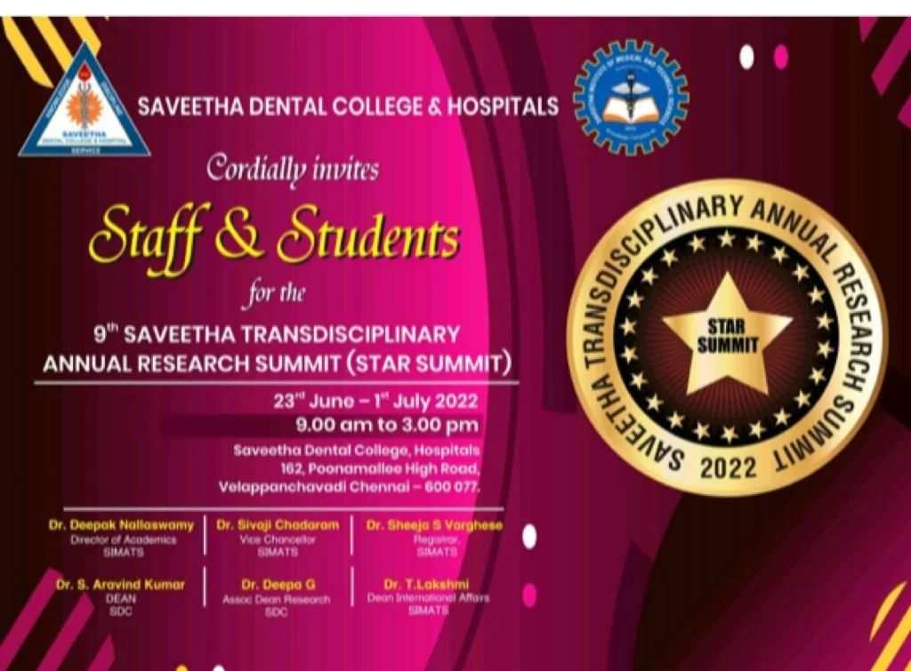 Saveetha's 9th Transdisciplinary Annual Research Summit - June 23rd 2022 - July 1st 2022 Jun 27 Written By Saveetha Microbiology Saveetha Microbiology