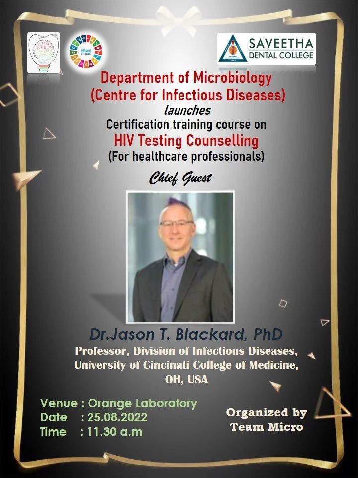 Chief guest: Dr.Jason T.Blackard, Ph.D., Professor, Division of Infectious diseases, University of Cincinati College of Medicine, OH, USA